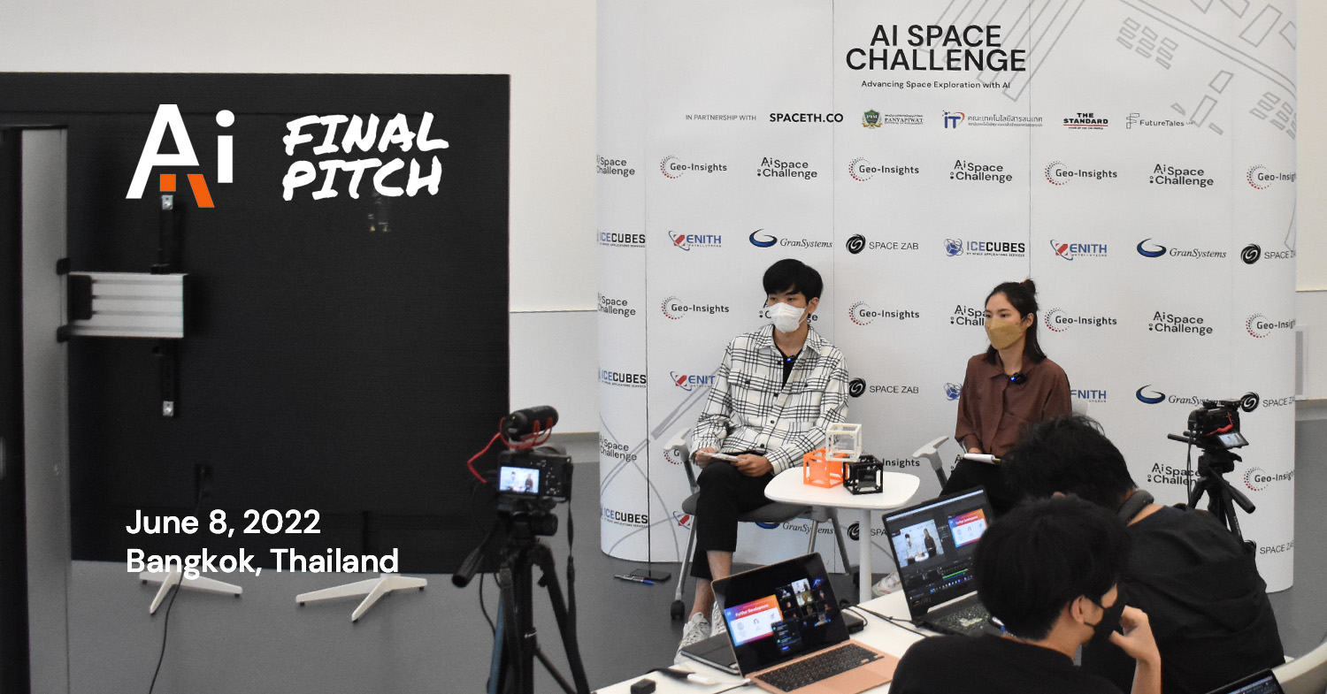 Bangkok, Thailand – AI Space Challenge at the final stage. Nine finalists presented their projects in the final pitching event which held as a hybrid event on Wednesday, June 8, 2022 at the Future Tales Lab by Magnolia Quality Development Company in Bangkok, Thailand.